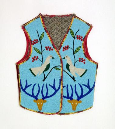 Title: Cloth lined vest with beaded animal and floral designs