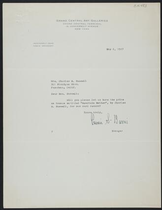 Gilcrease Museum is mindful of its responsibilities concerning the intellectual property rights of others and strives to protect images of items that are believed to be under copyright, to have content protected under rights of publicity or privacy, or to have other restrictions imposed by contract or policy. Only 6% of the total Gilcrease collections have been imaged and can be found online in thumbnail form. A small number of these items offer larger, expanded views. Digitization efforts are ongoing and new items are placed online regularly.