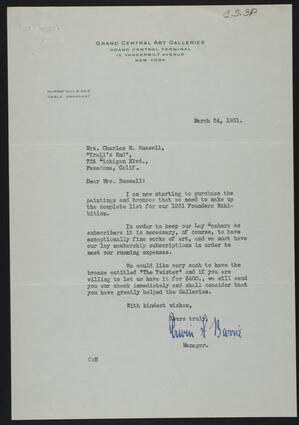 Title: From Grand Central Gallery to Nancy C. Russell