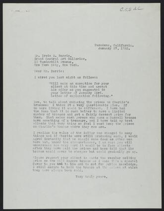 Gilcrease Museum is mindful of its responsibilities concerning the intellectual property rights of others and strives to protect images of items that are believed to be under copyright, to have content protected under rights of publicity or privacy, or to have other restrictions imposed by contract or policy. Only 6% of the total Gilcrease collections have been imaged and can be found online in thumbnail form. A small number of these items offer larger, expanded views. Digitization efforts are ongoing and new items are placed online regularly.