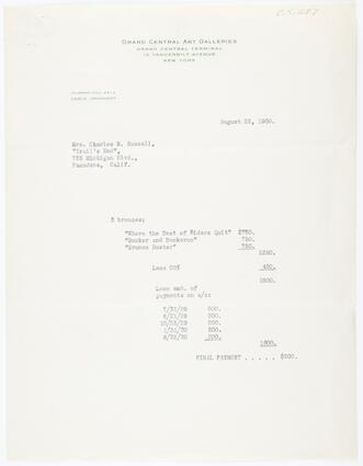 Title: From Grand Central Art Galleries to Nancy C. Russell