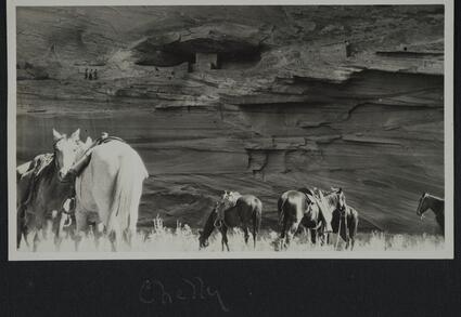 Title: Group of horses near cliff walls in Canyon de Chelly