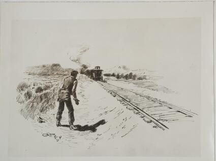 Title: Sketch of Cowboy Looking at Train