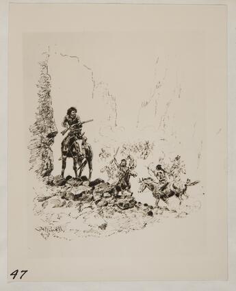 Title: Sketch of Trapper Being Attacked By Indians