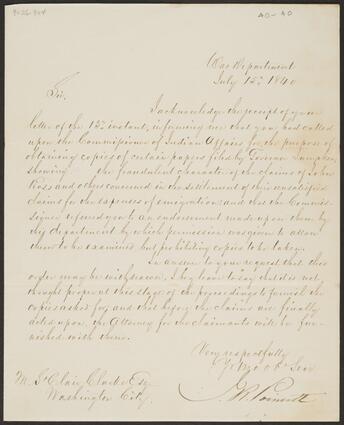 Title: Letter from Secretary of War Joel Roberts Poinsett to M. St. Clair Clarke