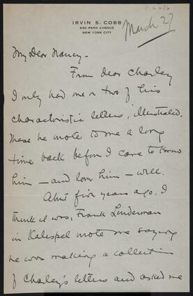 Title: Letter from Irvin S. Cobb to Nancy C. Russell
