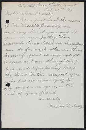 Title: Letter from Mrs. M. Cooling to Nancy C. Russell
