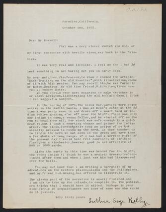 Title: Letter from Luther Sage Kelly to Charles M. Russell