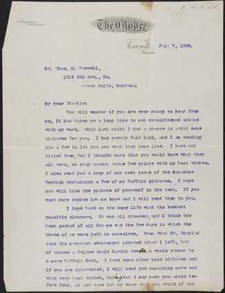 Title: Letter from M.O. Hammond to Charles M. Russell