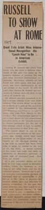 Title: Russell to Show at Rome: Great Falls Artist Wins International Recognition- His "Lunch Hour" to be in American Exhibit