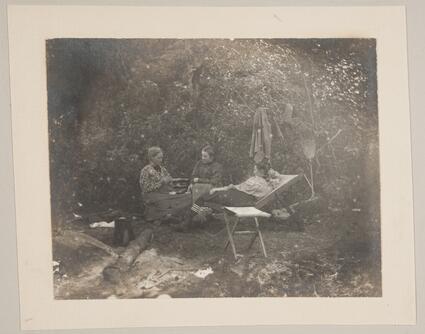 Title: Nancy C. Russell, Josephine Trigg Ridgley, and Woman at Camp