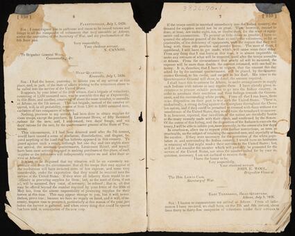Title: Printed Text of Letter Regarding Preparations for Placing Troops in Cherokee Nation