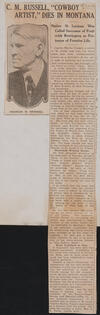 Newspaper clipping of an article discussing Charles M. Russell's works |