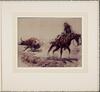 Painting of Indian on Horseback and Drawing of Charles M. Russell and Friends |