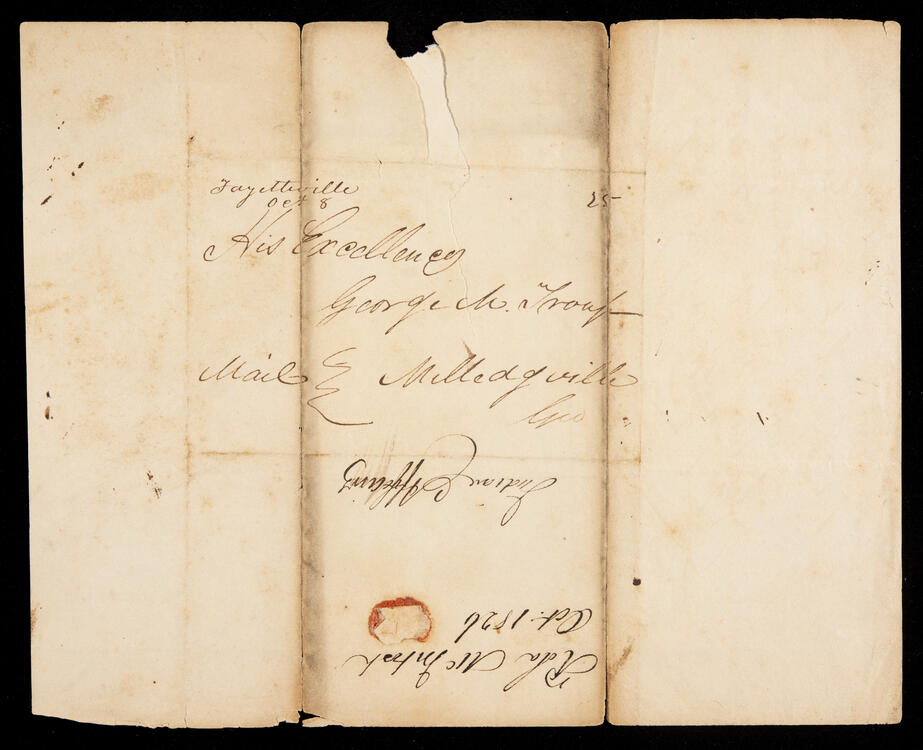 Letter from Rola McIntosh to Gov. George M. Troup regarding failure of Colonel Taft to review friendly Indian losses and asking aid.