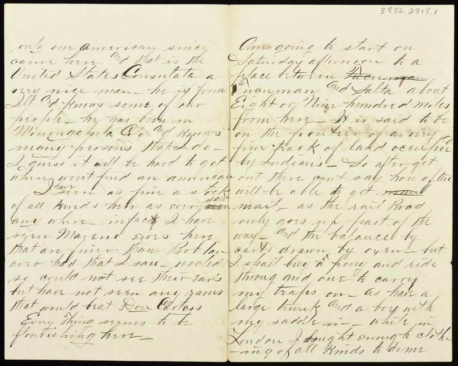 Handwritten letter from Franklin Van Voorhis (inferred) to Mrs. E.T. Van Voorhis. The contents of the letter concern Van Voorhis’s impressions of Buenos Aires and upcoming travel.