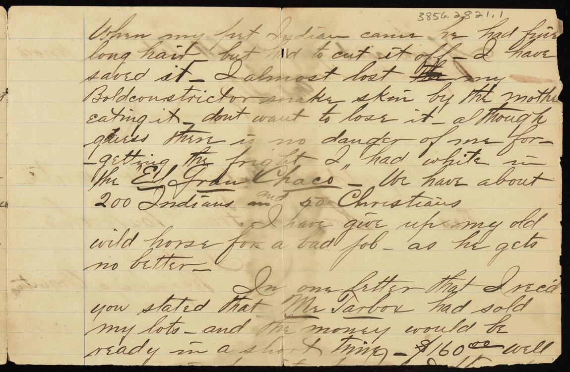 Portion of a handwritten letter from Franklin Van Voorhis to Mrs. E.T. Van Voorhis. The contents of the fragment concern Van Voorhis’s “fright” in Gran Chaco, family matters, and forms of address.