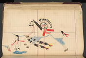 A Cheyenne man wearing a war shirt decorated in beadwork strips and eagle feathers and an eagle feather bonnet with ermine skins, counts coup on his opponent as he fires his weapon. His horse has been readied for battle with paintings on his rear, flank, and chest, a scalp and eagle feather hanging from his chin, and his tail tied with a red wool cloth strip. The horse carries a painted and feathered warrior's society sash. From the article: Preserving History in the Southern Plains: Cheyenne and Arapaho Ledger Drawings from Fort Reno, Plains Indian Art, Created in Community. Emma I. Hansen, Curator Emerita and Senior Scholar for the Buffalo Bill Center of the West, 2016.