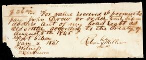 Request to Mr. James Lslajs (Judge), from L. S. McBrand for a payment of fourteen and 87 l/2 dollars to be paid to Mr. Charles Thornton