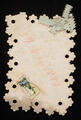 Blue, gold, and white valentine. In center: blue, purple, and yellow pansies, note "True to Thee". Inside: print of boy and girl with poem, "Dear little friend, I send you here with heart sincere, a loving line; and it will be a joy to me, to get from you a Valentine."