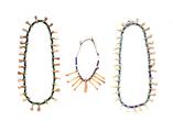 Plains Indians’ necklaces “were made of grass, seeds, shell beads, strings of fossil crinoids, animal claws, horns, antlers, and teeth, especially elk teeth” (Paterek 1994, 86). Trade beads were made and brought from Europe to trade with the Native Americans for gold, furs, and other precious materials. Many beads were made in Italy, often from glass. The Native Americans greatly valued these beads because the beads they made were arduously crafted one at a time and, therefore, were valuable and rare (Dubin 1999, 172).