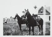 Photograph of a painting of cowboys and horses being ambushed on the plains.