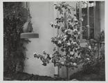 Negative of Charles M. Russell mounting or dismounting a horse.