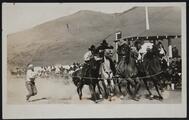 A photograph of a bronze self-portrait of Russell lighting a cigarette on his walking horse. |