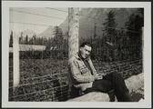 Man with no pants herding horses across river. Has sticker in the corner with, '48pee 2.8' hand written on it.