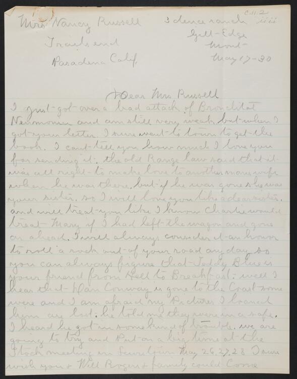 Letter from Teddy Blue to Nancy C. Russell