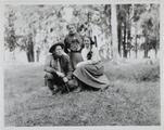 Charles M. Russell and Austin Russell by porch of Bull Head Lodge, Montana.