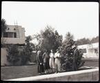 Negative and scan of the negative, same image as TU2009.39.5838a. Photograph of Charles M. Russell and Philip R. Goodwin dressed as cowboys and posing as hunters in the woods. Criteria 1907.