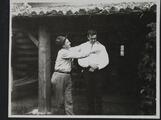 Two Men in front of Charles M. Russell's Montana Studio