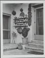 Nancy C. Russell sitting on rocky shore near edge of woods.