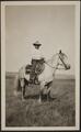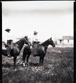 Photograph of Edward Borein on the left, a California cowboy artist and close friend of Charles M. Russell, and an unknown man on horseback in open field.