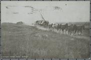 Photograph of a painting by Charles M. Russell which is of one cowboy shooting another cowboy. Charles M. Russell's signature is visible in the lower left corner of image. The back of the image appears to have had glue brushed on it.