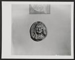 Negative of a plaster model of a seated Indian man with his knees drawn up to his chest.