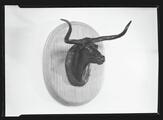Negative of a photograph of a plaster plaque with an Indian head on it