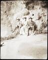 Photograph of two sculptures, one of an Indian woman riding a mule and the other of a pack mule. Verso is a stamp that reads 'This is to certify that the subject herewith identified: Two Pieces - Pack Mule & Indian Squaw on Mule Original Model by C.M. Russell (information handwritten) was an asset of the Estate of Nancy C. Russell, deceased. June 1941 (illegible signature) as executor of the above estate.'