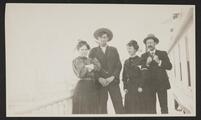 Photograph of three handmade lawn fairies cravings that are on the ground around a mushroom