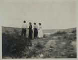 Parade of Unknown Native Americans with wagons and horses. Hand written on the back, "Indian Band".