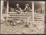 Photo of Unknown Man and Porcupine. Written on front, "HIRI'S R.V.S. F.F.F.F " Stamped on the back, Thiri's Aerial View Service G.N.P. V-No Lake McDonald. Mont. Compliments of the Season" Hand written, "8-17-14 To Mr+Mrs C.M. Russell."