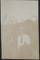 Negative and copy of a negative of a large group of Indian men in traditional dress on the prairie.