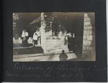 Two Women and Two Children near Stone Column