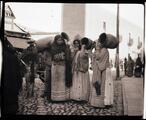 Black and white photograph of a model sailing ship on a lake. Likely Lake McDonald.