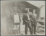 Black and white photograph of Charles M. Russell, Ella Ironside, Austin Russell with older couple and child. In pencil on bottom of photograph is 'Mrs. Trigg.'