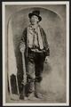 Black and white photograph of Indians at ceremony. Indian is holding object. There are a number of people seated in the background.