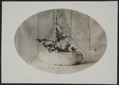 Black and white photograph of a plaster model elephant by Charles M. Russell. On the same album page as TU2009.39.7654.39-41.