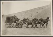Photograph of bronze titled, "Where the Best of Riders Quit." Bronze depicts man clinging to horse as it is bucking.
