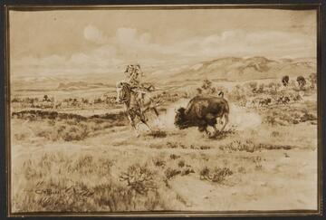 Indian Chasing Buffalo